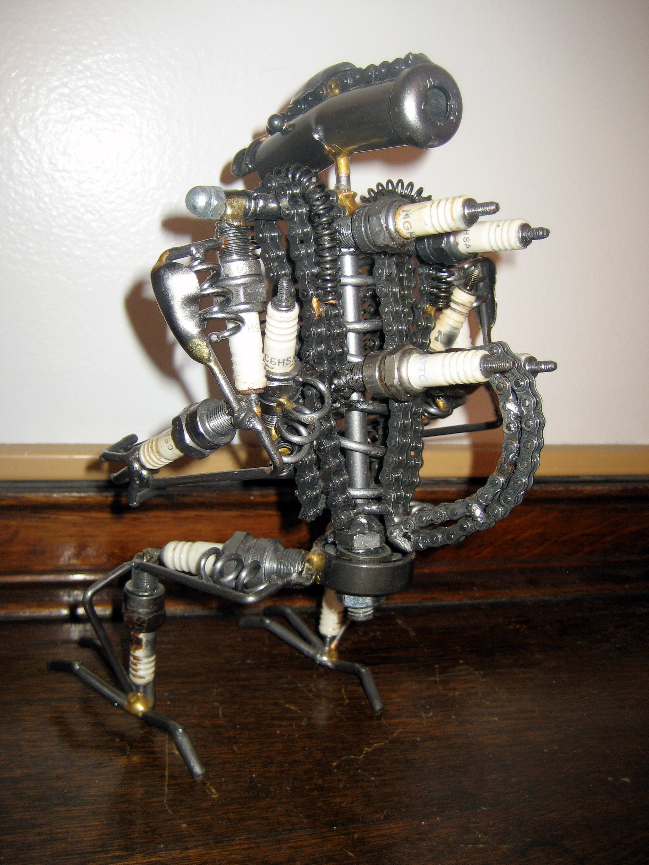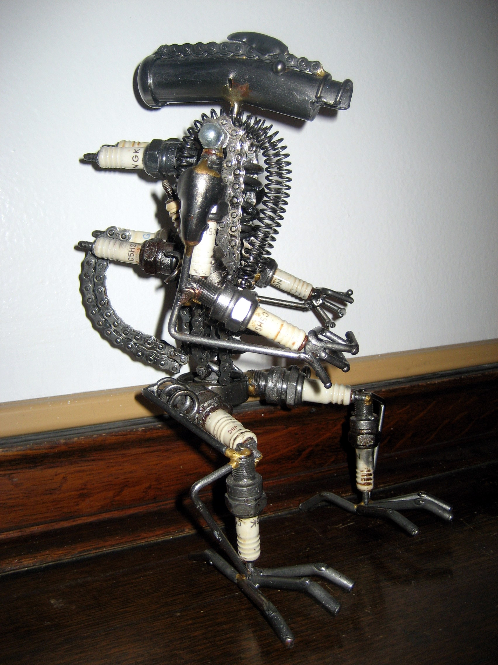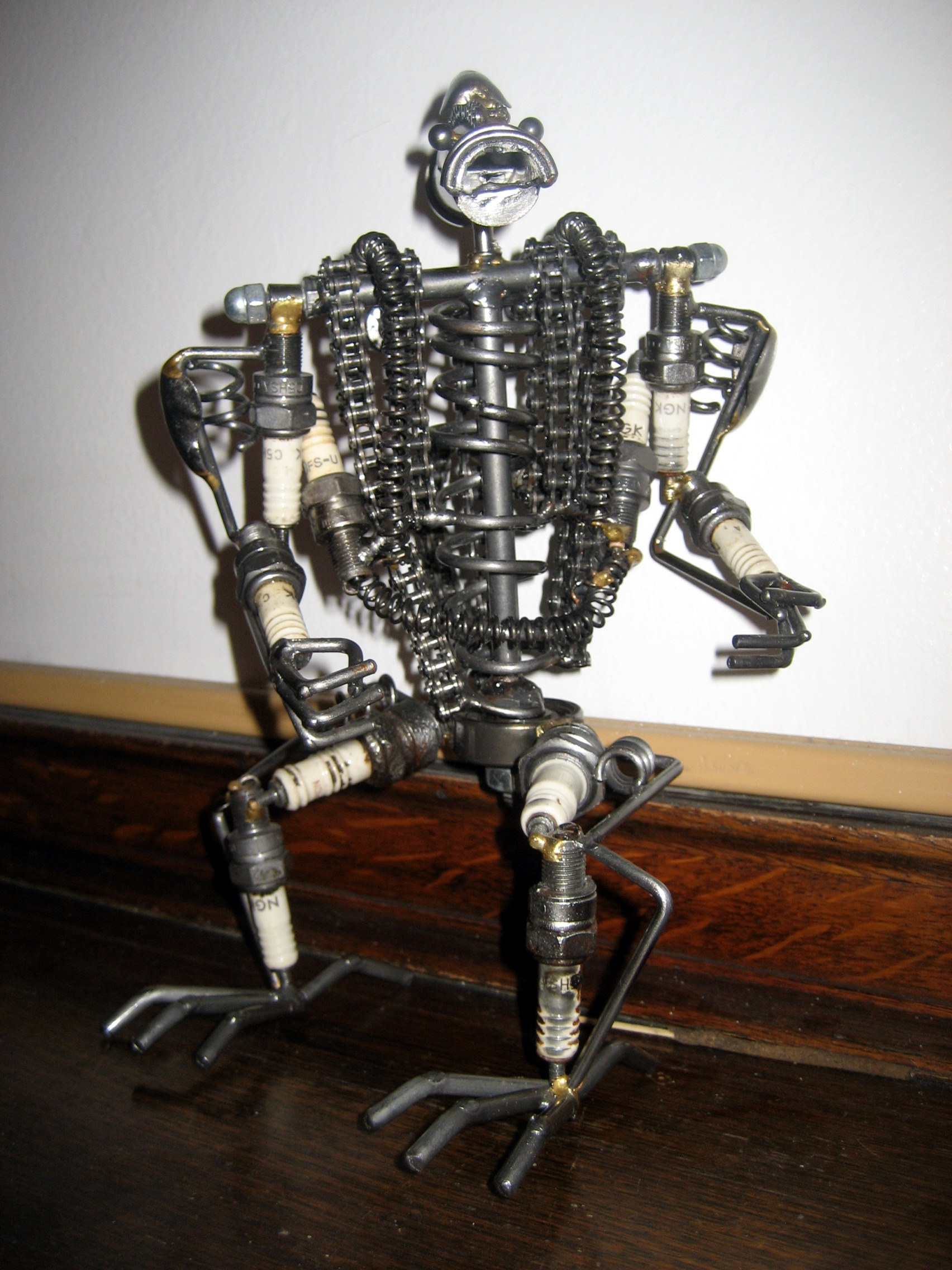 New York based Lipson Robotics, is the mastermind and creator responsible for these uber cool sculptures. They’re composed of random pieces found at thrift stores, recycle shops, junkyards, retail stores, construction sites and off of the street. Think Bender from Futurama meets a 1957 Chevy Bel Air and they decide to swap scraps. I love the idea of owning something that was created through a scavenger hunt, of sorts. If only the individual pieces could tell their life stories!